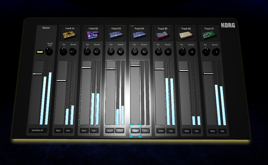 | トラック | 縦の列は曲を構成する1つのパートで、1つのガジェット楽器が対応します。 ドラムのトラック、ベースのトラックなど複数のガジェット楽器を並べて曲を作っていきます。 |