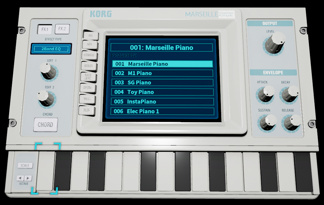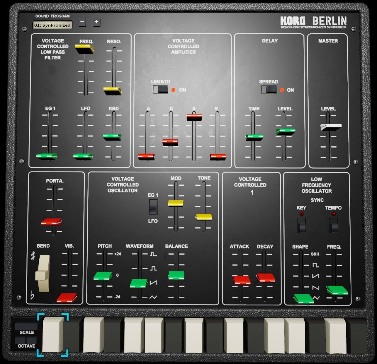 - ガジェット楽器によってノコギリ波や矩形波といった基本的な波形から、アコースティック楽器のPCMVPM波形、金属的な音を出しやすいなど様々なオシレーターを備えています。
