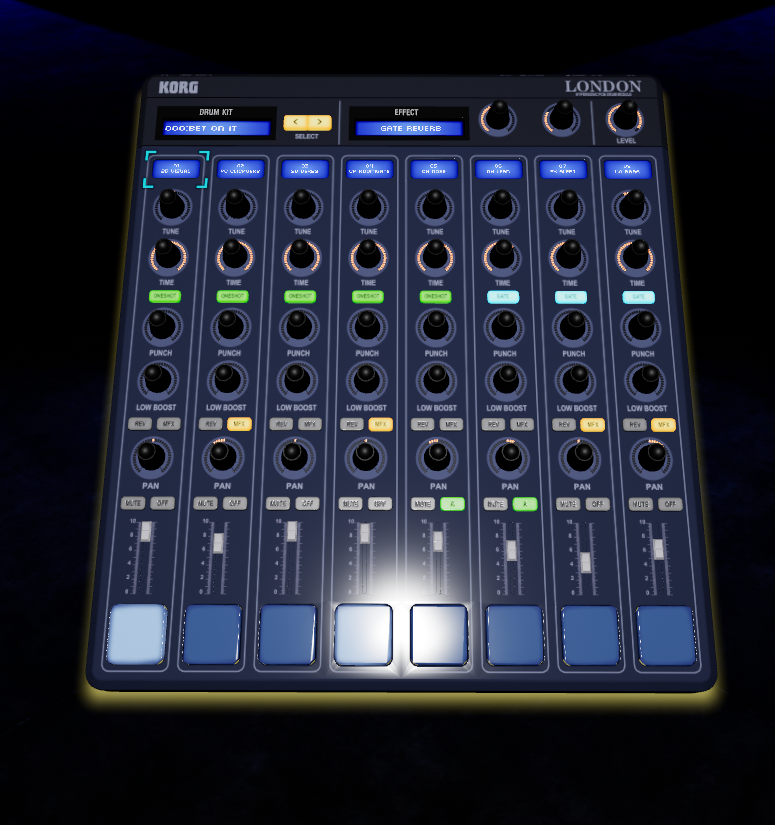 ノブやフェーダーを選択している場合、A ボタンを押しながら コントローラをひねったり上下に動かしたりすると、そのパラメーターを操作できます。 |