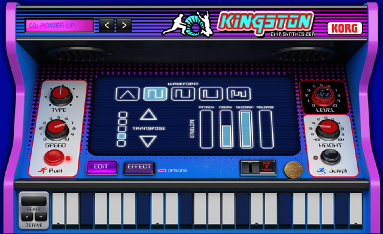 EDIT | WAVEFORM This selects the waveform of the oscillator. TRANSPOSE This adjusts the pitch of the oscillator. ENVELOPE ATTACK This sets the amount of time from note-on until the attack level is reached. DECAY This sets the amount of time from when the attack level is reached until the sustain level is reached. SUSTAIN This sets the sustain level. RELEASE This sets the amount of time that it will take for the level to fall from the sustain level to zero following note-off. |