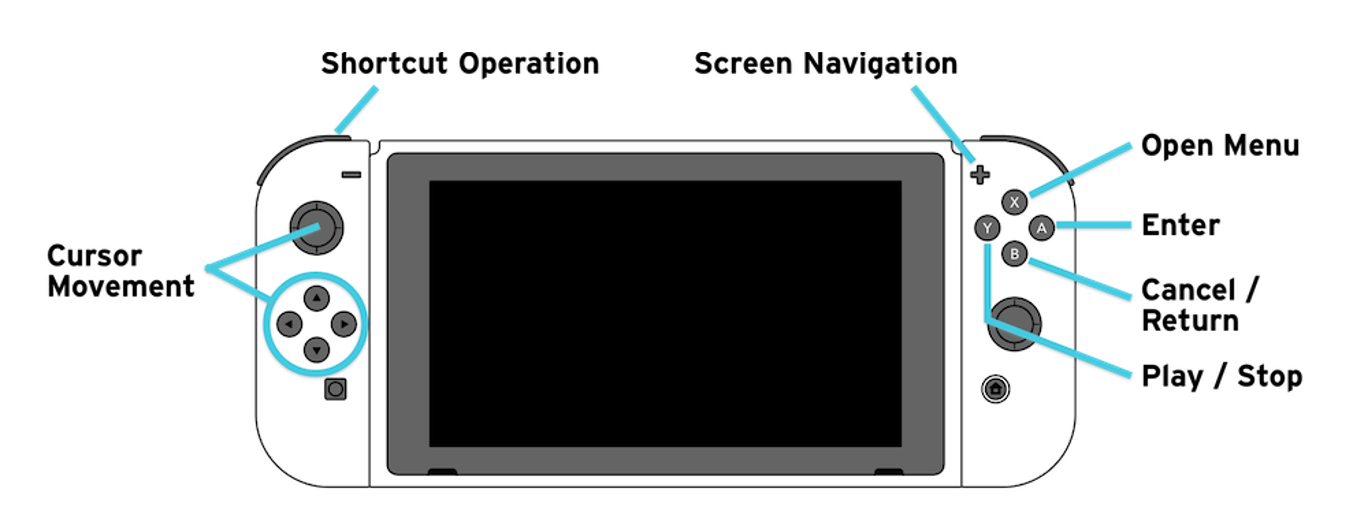 Press the L button to enter the shortcut screen, then use the left joystick or the direction buttons to move between tracks or scenes. |